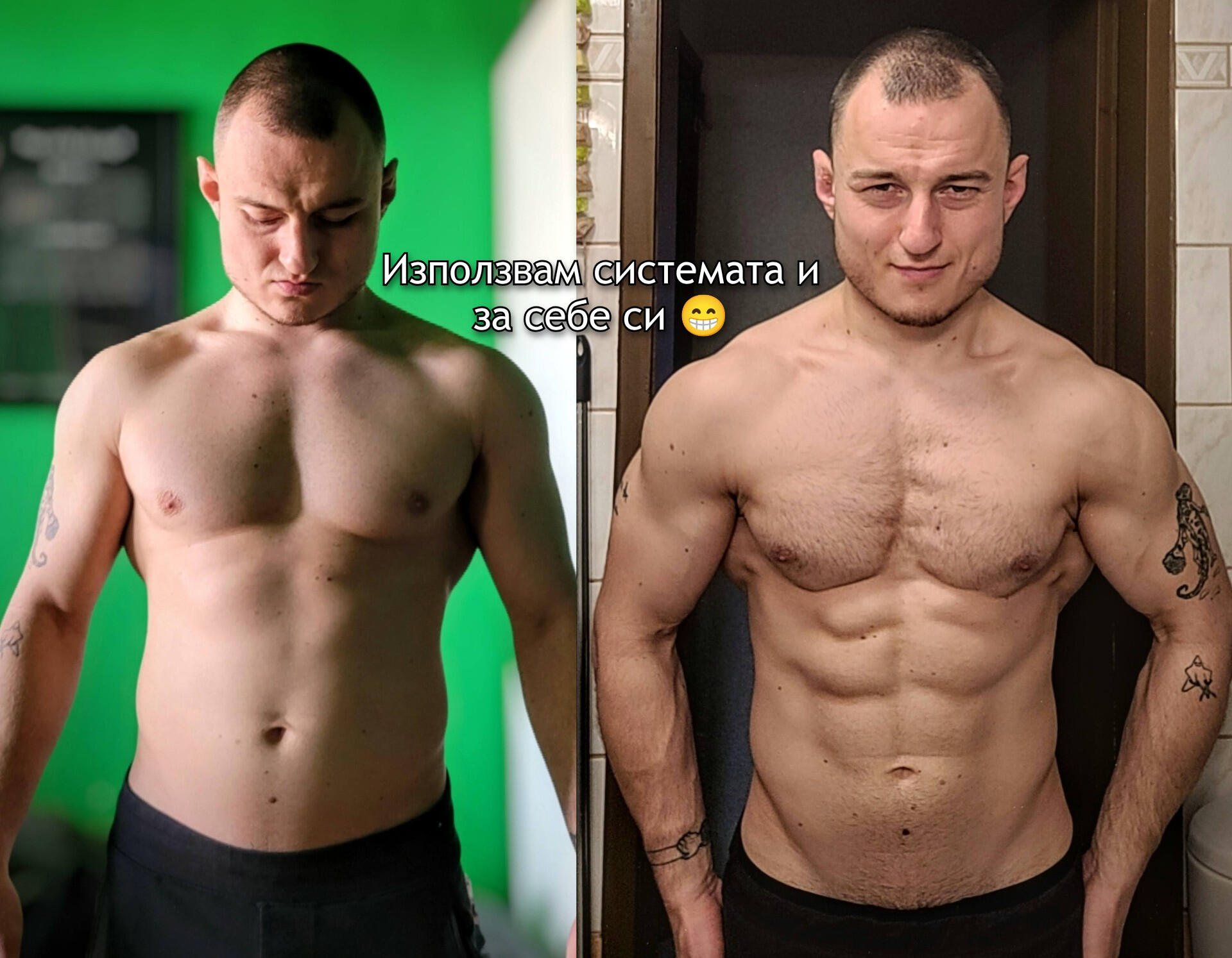 Здравей! Казвам се Стоян Андонов и съм фитнес треньор.Радвам се, че благодарение на знанията и опита си мога да помагам на хора да постигнат резулати като тези:
